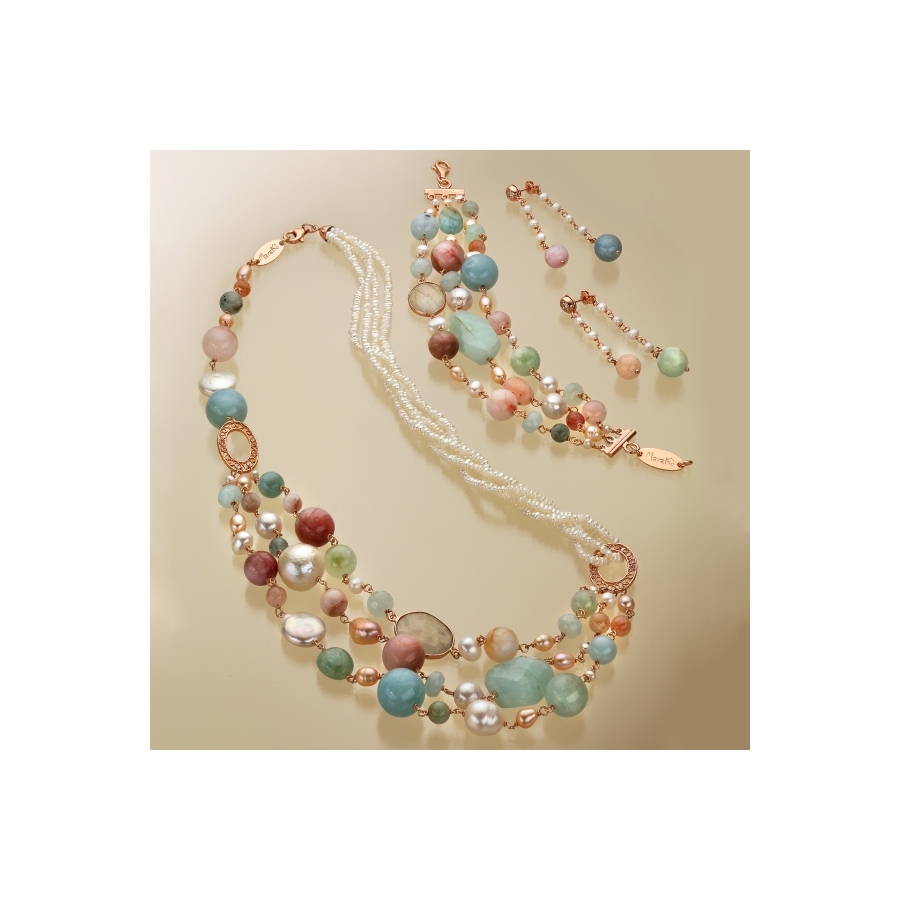 cod: P158 - Parure acquamarina multicolor, perle coltivate