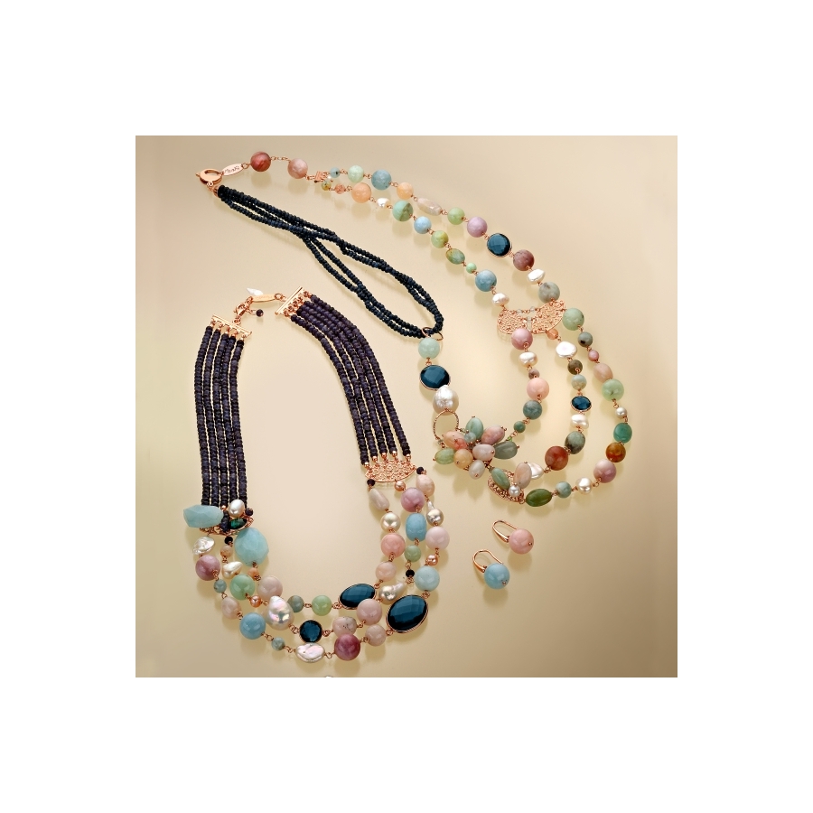 cod: p152 - Parure agata blu zaffiro e acquamarina multicolor