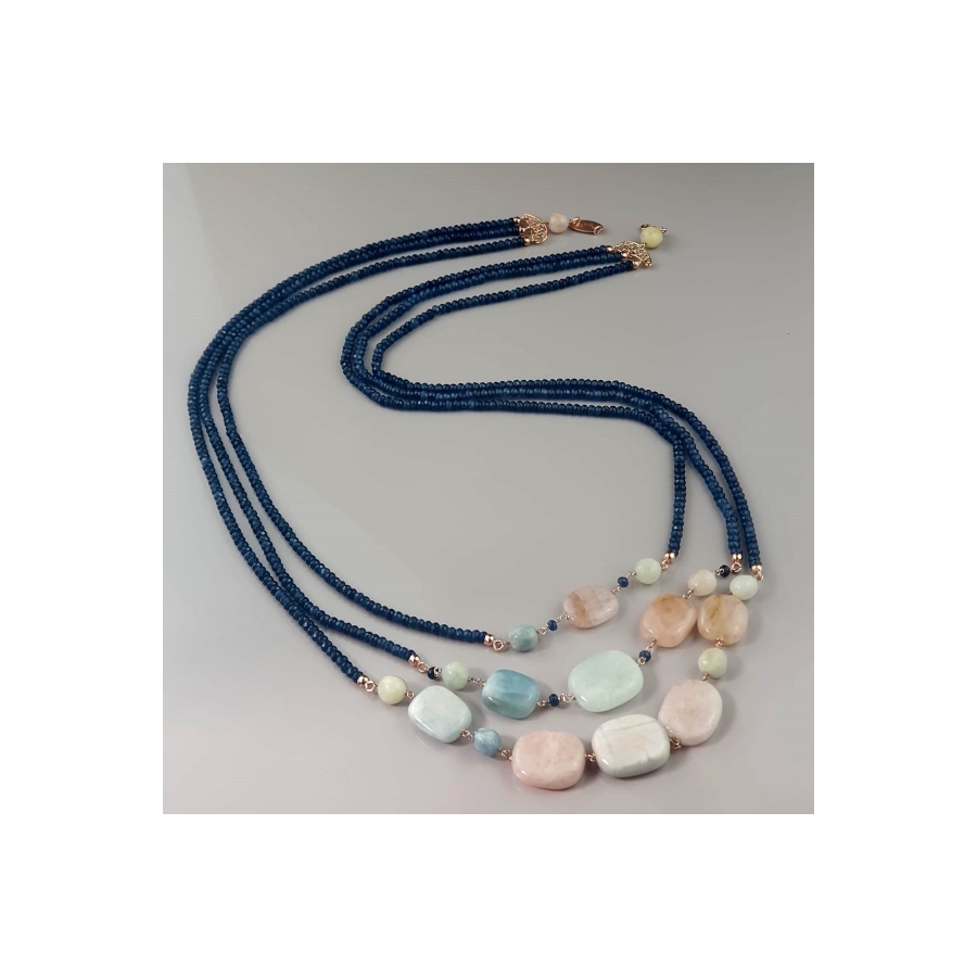 cod: cn3218 - Chanel a 3 fili agata blu zaffiro, Acquamarina multicolor