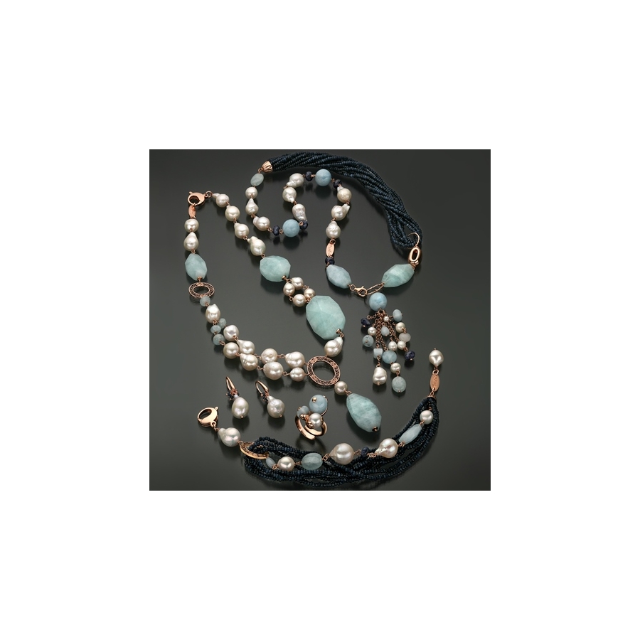 cod: p176 - Parure agata blu zaffiro, acquamarina, Perle coltivate